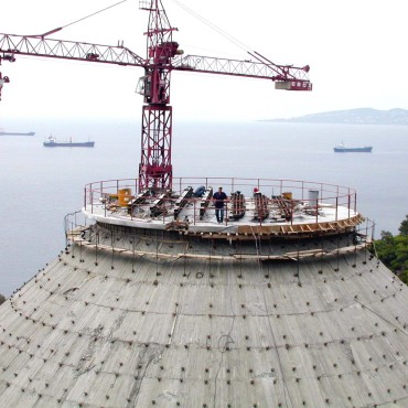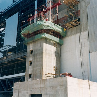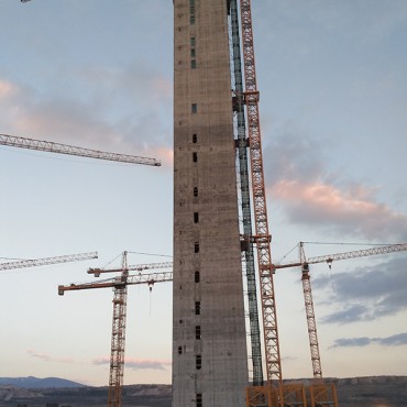- Tower H=106.00 m - The construction was made without the use of extra crane - On the sliding type was mounted the cran…